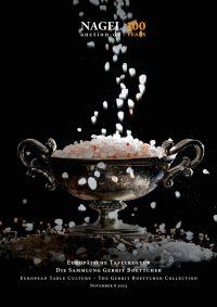 479 PAAR SALIÈREN KÖLN, UM 1790 8,2 x 6 x 4,9 cm Silber, ovale Schälchen, durchbrochen gearbeitet. Kobaltblaue Glaseinsätze. Bewegliche Bügelhenkel mit Perlband. Lötigkeitsziffer 12, Meister Paul Knips (getauft 1737, Meister 1765, gest. 1807). Ohne Glas ca. 114g. Min. rest., 1 Glas besch., Chips. PROVENIENZ Sammlung Gerrit Boettcher. Lit. Scheffler, Rheinland-Westfalen, Nr. 1789, Clasen, Rheinische Silbermarken, Nr. 187. A PAIR OF RHENISH OPENWORK SILVER SALT CELLARS - COLOGNE, CA. 1790 Oval openwork silver stands with blue glass liners. Movable pearl ribbon tooled bow handles . Standard no. “12”, master Paul Knips (baptised 1737, master 1765, d. 1807). Without glass ca. 114g. Min. rest., 1 glass dam., chips. PROVENANCE Collection Gerrit Boettcher Lit. Scheffler, Rheinland-Westfalen, Nr. 1789, Clasen, Rheinische Silbermarken, Nr. 187. € 500,-/700,- 480 PAAR SALIÈREN ELBERFELD, CA. 1785 H. 11,2 cm Silber, getrieben und graviert. Offen gearbeitet mit Lorbeergirlanden und Karyatiden. Holzfuß und kobaltblaue Glaseinsätze. Lötigkeitsziffer „13“, Jahresbuchstabe „W“, Meister Johann Jakob Prior (geb. 1746 Frankfurt, ab 1784 in Elberfeld, gest. 1820 Köln). Ca. 220g. ohne Glas/Holz. Leicht verbogen. PROVENIENZ Sammlung Gerrit Boettcher. Lit. Clasen, Rheinische Silbermarken, S. 163, Nr. 638. A PAIR OF RHENISH OPENWORK SILVER SALT CELLARS WITH BLUE GLASS LINERS - ELBERFELD, CA. 1785 Silver, chased and engraved. Wooden base and cobalt blue glass liner. Marked “13”, date letter “W”, master Johann Jakob Prior (b. 1746 Frankfurt, from 1784 in Elberfeld, d. 1820 Cologne). Ca. 220g. without glass/wood. Slightly bent. PROVENANCE Collection Gerrit Boettcher Lit. Clasen, Rheinische Silbermarken, S. 163, Nr. 638. € 500,-/700,- 481 PAAR SALIÈREN AUGSBURG, 1785-87 9,5 x 7,3 x 4,8 cm Silber, gegossen, durchbrochen gearbeitet, graviert. Mit Widderkopf-Motiven. Kobaltblaue Glaseinsätze. Stadtmarke mit Buchstabe „C“, Tremolierstrich, Meister Philipp Friedrich Bruglocher (geb. 1743, Meister 1771, gest. 1826). Ca. 94g. ohne Glas. Min. Chips. PROVENIENZ Sammlung Gerrit Boettcher. Lit. Seling, Augsburger Goldschmiede, Nr. 272, 2531a. A PAIR OF GERMAN OPENWORK SILVER SALT CELLARS WITH BLUE GLASS LINERS - AUGSBURG, 1785-87 Silver, cast, openwork, engraved. Hallmark with date letter “C”, master Philipp Friedrich Bruglocher (b. 1743, master 1771, d. 1826). Ca. 94g. without glass. Min. chips. PROVENANCE Collection Gerrit Boettcher Lit. Seling, Augsburger Goldschmiede, Nr. 272, 2531a. € 700,-/900,- 82