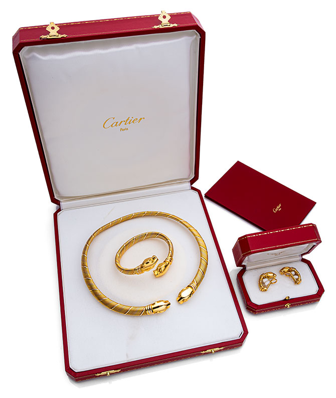 Panthère de Cartier Parure comprising a necklace, a bangle and earclisps